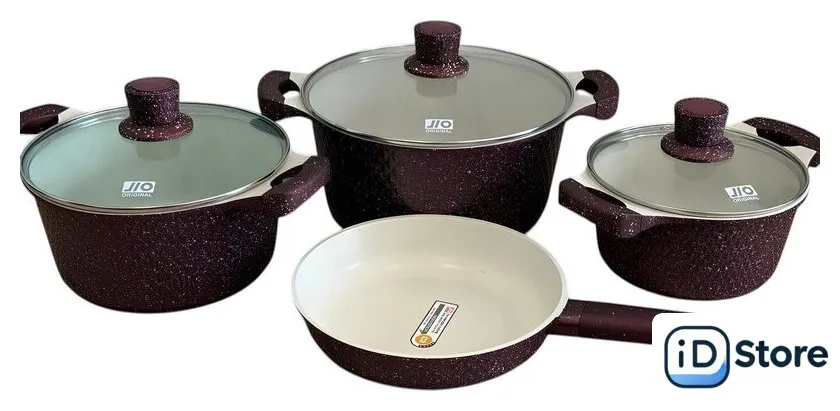 набор кастрюль, алюминий, покрытие фторопласт, крышка стеклянная. Доставим по Минску в день заказа, при оформлении заявки до 14.00. Официальная гарантия.
