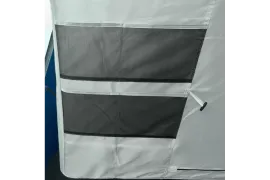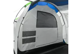 Туннельная конструкция спальных комнат позволяет уменьшить угол уклона боковых стен и увеличить внутреннее пространство. В тамбуре имеется прозрачное окно с занавеской. По всей палатке размещены кармашки для хранения мелочей, в спальнях и тамбуре предусмотрены крючки для подвешивания фонарика.
