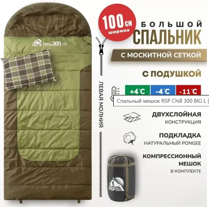 Спальный мешок RSP Chill 300 BIG L (225100см, молния слева)