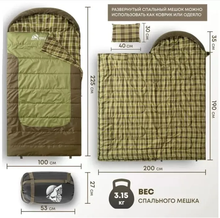 Спальный мешок RSP Chill 300 BIG — увеличенная версия популярной модели в форме одеяла. Длина 225 см, ширина 100 см, что делает его удобным для крупных людей и тех, кто предпочитает просторные спальники. Двухсторонняя молния позволяет полностью расстегнуть мешок и использовать как одеяло или подстилку.