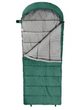 Прямая горизонтальная прострочка предотвращает смещение утеплителя и образование холодных зон. Капюшон затягивается с помощью утяжки, оставляя небольшое отверстие для поступления воздуха. В верхней части спальника расположен потайной карман для телефона, документов или мелочей, а в нижней — две петли для просушки и проветривания. Молнии, боковая и нижняя, оснащены антизакусывателем, ветрозащитным теплым клапаном и фиксатором от случайного открытия. Спальники выпускаются с левой и правой молнией — два таких можно состегнуть в один семейный.