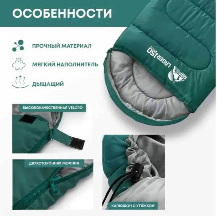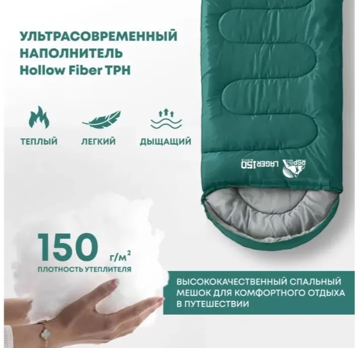 Спальный мешок RSP Lager 150 R (220x75см, зеленый, молния справа) в Бресте