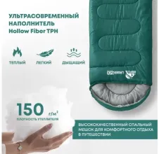 Утеплитель Hollow Fiber TPH собственной разработки RSP: волокна с микроотверстиями создают воздушные полости, а воздух — лучший теплоизолятор. При меньшем весе и плотности даёт высокую теплоизоляцию. Волокна упругие — после распаковки быстро расправляются, возвращая спальнику пышность и мягкость.