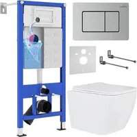Унитаз подвесной Roxen Cube в комплекте с инсталляцией StounFix Dual Fresh 6 в 1 968436 (кнопка сатин)