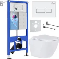 Унитаз подвесной Roxen Antares в комплекте с инсталляцией StounFix Dual Fresh 6 в 1 569295 (кнопка белый глянец)
