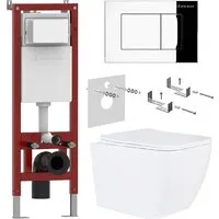 подвесной, конструкция: без бачка, задний подвод воды, горизонтальный выпуск, двухрежимный слив, с сиденьем, безободковый