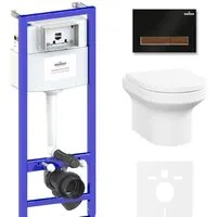 подвесной, конструкция: без бачка, задний подвод воды, горизонтальный выпуск, двухрежимный слив, с сиденьем