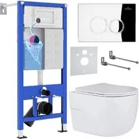 подвесной, конструкция: без бачка, задний подвод воды, горизонтальный выпуск, двухрежимный слив, с сиденьем, безободковый