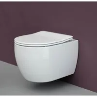 подвесной, конструкция: без бачка, задний подвод воды, горизонтальный выпуск, с сиденьем, безободковый